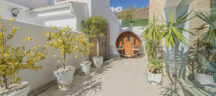 LARGE, WONDERFUL VIEW VILLA – TORREBLANCA DEL SOL – FUENGIROLA – MÁLAGA – SPAIN Bright and spacious, south-facing villa of 379 m2, with i.a. 2 living rooms, 6 bedrooms, 4 full bathrooms, glass-covered patio, large garage and double carport. Located at the top of quiet Torreblanca del Sol with corresponding 360 degree views of the Mediterranean, Fuengirola, Mijas, and El Higuerón. The villa is spread over three floors, which are externally fitted with white PVC security windows and security doors throughout. A / C, door phones with screens, internal telephone system, fiber connection to Movistar with router and 2 access points that cover WiFi throughout the property. The upper floor of 90.20 m2, consists of 1 large master bedroom with security door, fitted wardrobes and with 1 full bath en suite, 2 spacious bedrooms with fitted wardrobes and 1 full bathroom on the distribution corridor where there are additional wardrobes. There is access to a magnificent, south-facing and secluded sun terrace of 22 m2, with a fantastic view of the Mediterranean. The middle floor of 143.60 m2, consists of a covered main entrance, hall, a stately living room, 1 bedroom with full bath en suite and wardrobe corridor, a large and delicious, fully equipped kitchen with everything in Siemens equipment. There is access from the living room as well as from the kitchen to terraces that are covered with projecting awnings. The terraces and a lawn surround the villa’s magnificent swimming pool, which measures 9.30 x 4.40 meters and is 2 m at its deepest. A wide carport provides shade for two cars. The lower floor of 84.60 m2, contains a separate apartment with its own entrance and terrace. Living room with open kitchen, security door to 2 bedrooms, glass-covered patio and a luxurious bathroom with jacuzzi spa. There is access to the rest of the villa via a fire door. In addition, there is a spacious garage with access to the rest of the villa through a security door. Two modern water tanks (2,000 liters) ensure uninterrupted water supply to the property. Fuse panel with overvoltage and undervoltage relays. The villa is illuminated at night by 11 powerful LED spots, 7 of which are directed by twilight relays and 4 by motion relays. In addition, the gardens are equipped with 80 LED bulbs, which give an exclusive impression of the subtropical / tropical planting and of the various decorative garden figures. The entire property is equipped with a sophisticated alarm system connected to SECTOR ALARM and with internal cameras and a CCTV system. This means that you can also monitor your property via your own mobile phone, wherever you are in the big world. The property must be seen!