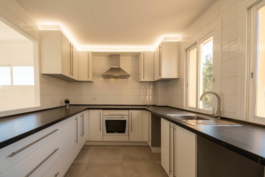 The property is bright and fresh throughout having been recently renovated and modernised. It consists of entrance hall, large lounge diner with feature fireplace, fully equipped modern kitchen with top of the range appliances and separate utility room, three double bedrooms and two full bathrooms (the master with ensuite.)